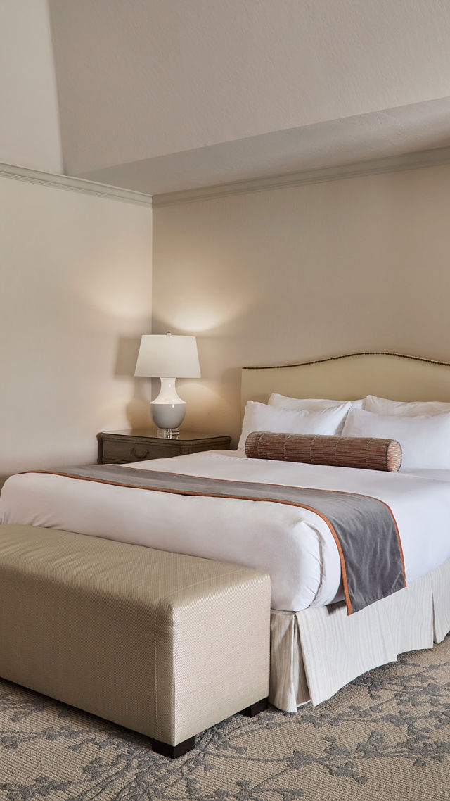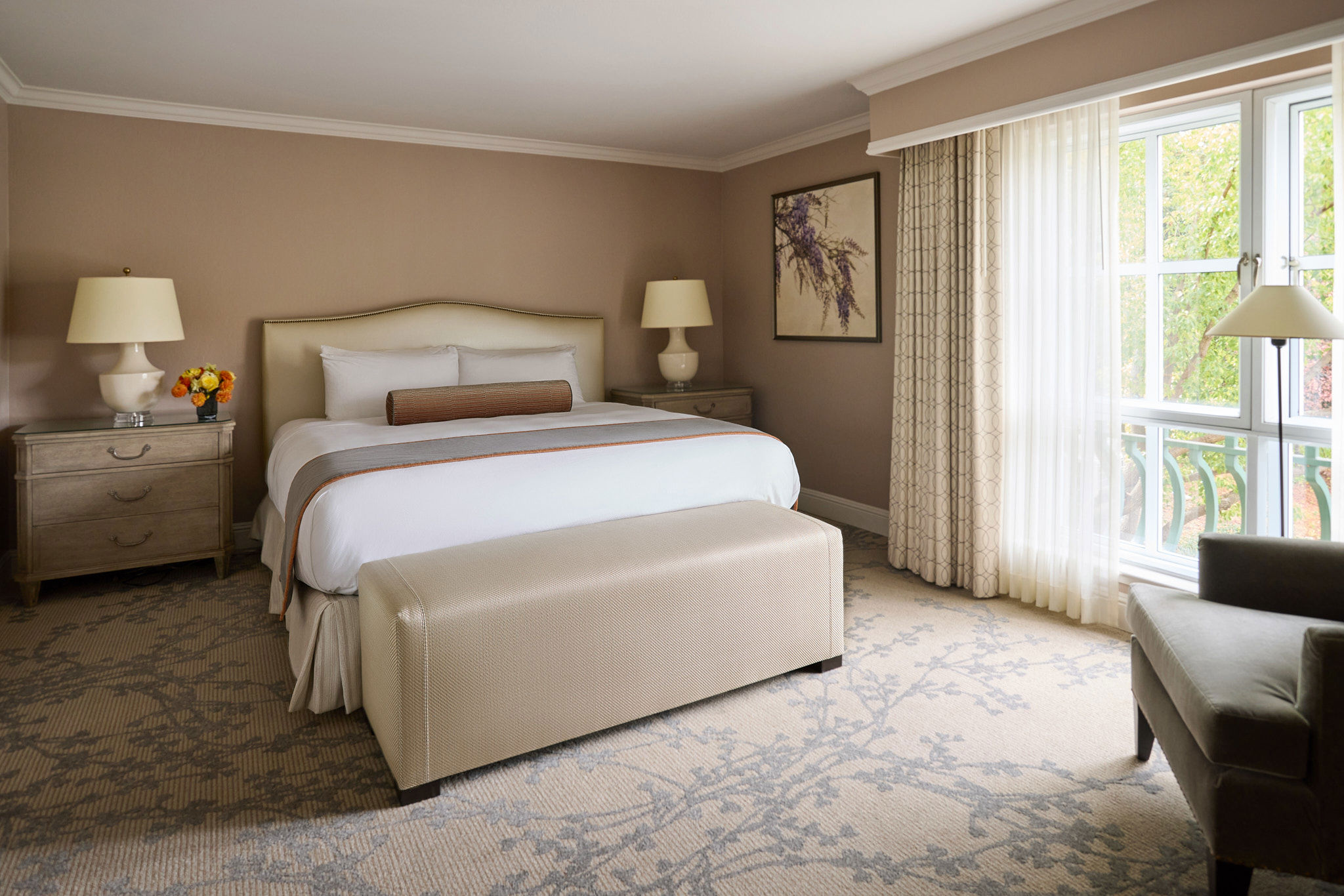 The oversized, richly upholstered armchairs invite you to sink in and relax. A spacious king-size bed, stylish work desk and gleaming bathroom complete this inviting retreat.