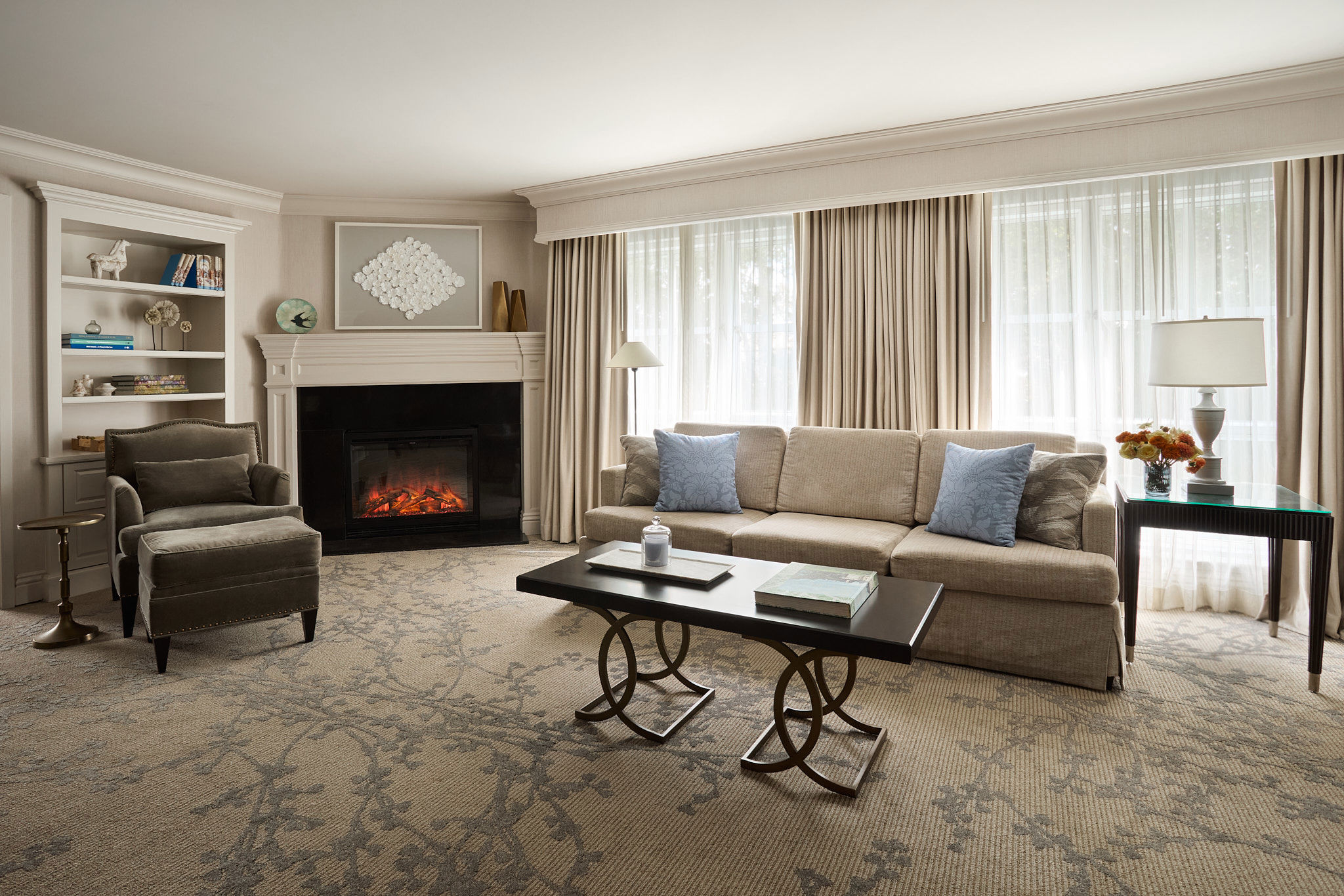 The expansive main room features a beautiful window-side living area and dining space. The six-person dining table is ideal for business meetings or intimate gatherings with friends and family.