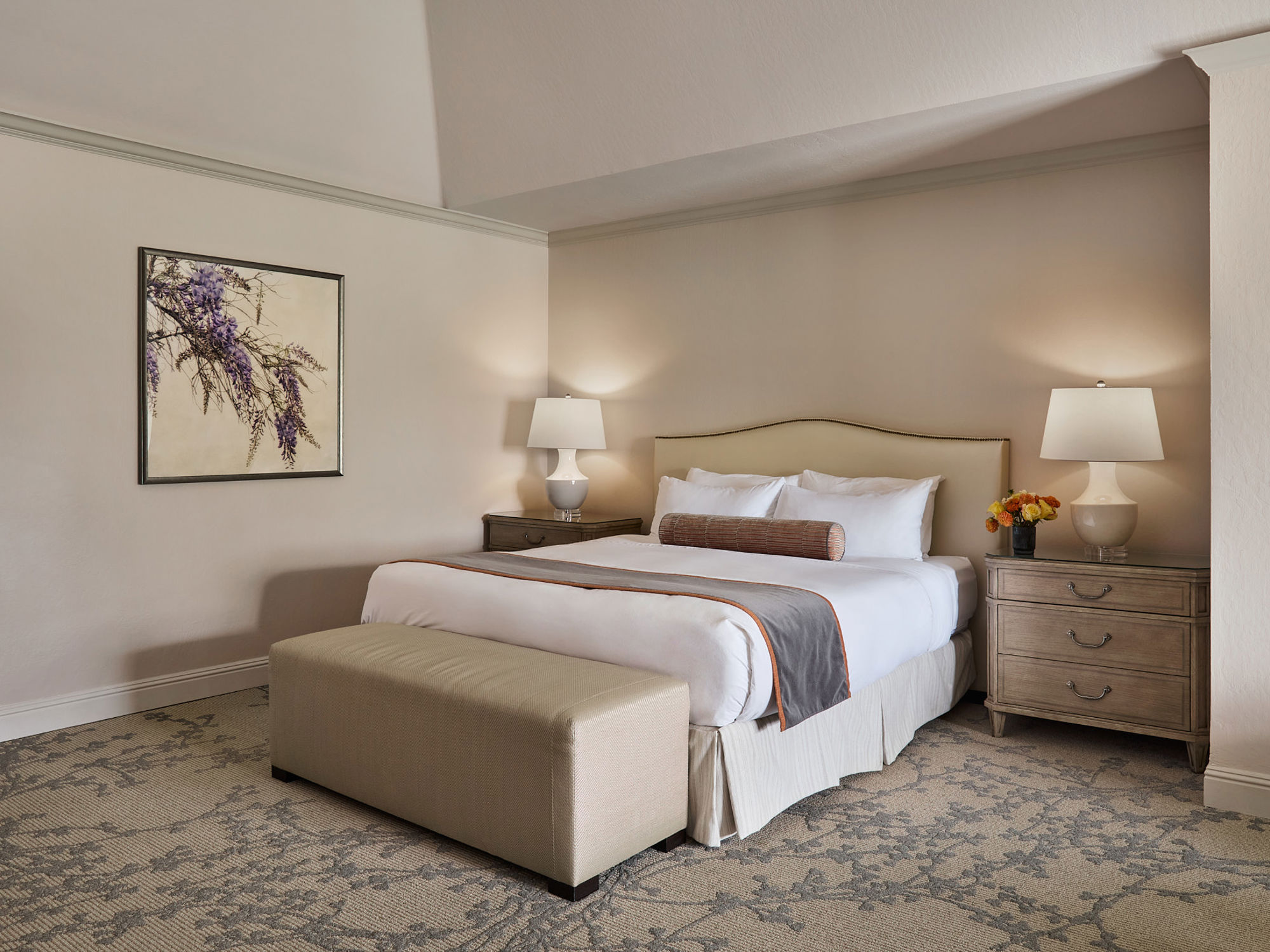 The oversized, richly upholstered armchairs invite you to sink in and relax. A spacious king-size bed, stylish work desk and gleaming bathroom complete this inviting retreat.